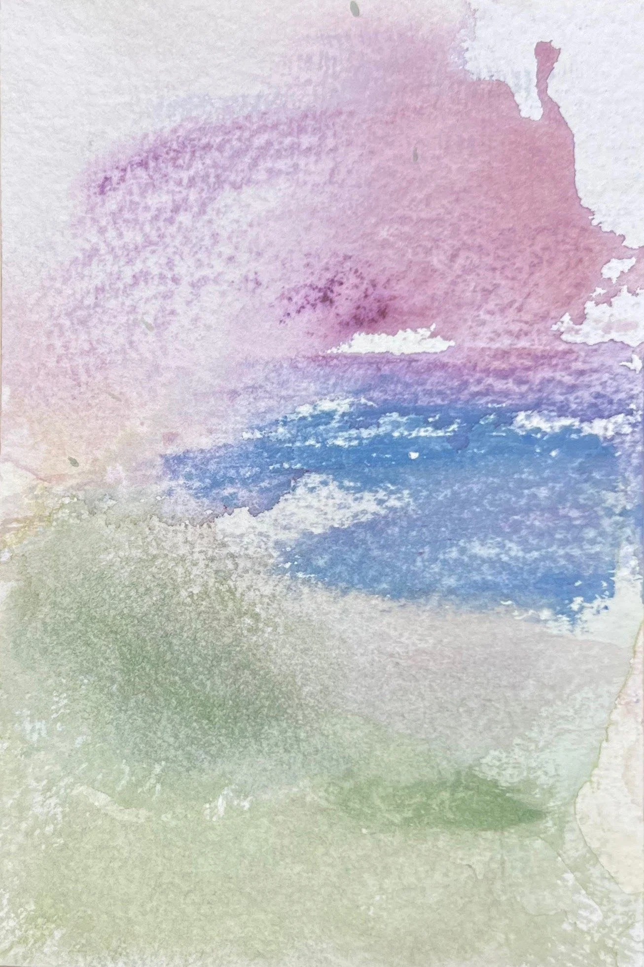 The media used was quick and accessible. I let my brush width, impression of the sky, the paint flowing with water, and the color palette, inform where the strokes go. The paintings have taught me through life we learn and grow and die, ultimately feeding the forward-moving presence of the now, of the love above.
